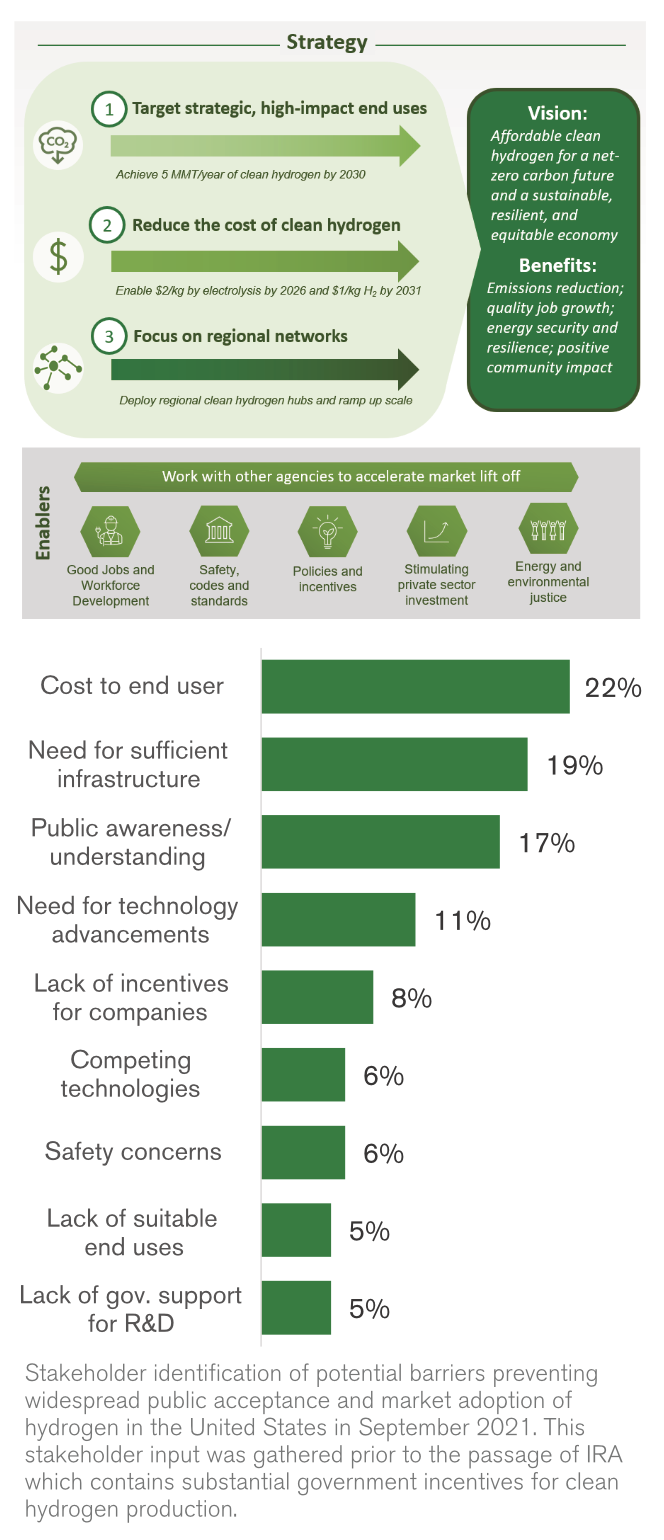 In June, the U.S. Department of Energy (DOE) released the U.S. National Clean Hydrogen Strategy and Roadmap. The document states, “Realizing these opportunities for clean hydrogen will require lower cost of production, the buildout of midstream infrastructure, and increased hydrogen demand in specific sectors where there are fewer cost-competitive or technically feasible alternatives for decarbonization,” and prioritizes three key strategies to ensure that clean hydrogen is developed and adopted as an effective decarbonization tool: