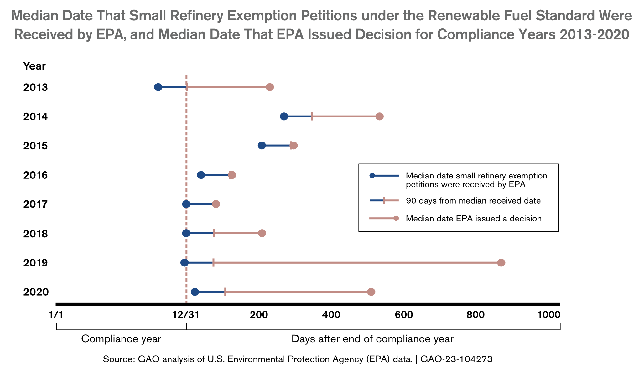 According to the report, EPA has issued exemption decisions after the 90-day deadlines 89 percent of the time (190 out of 214 decisions). In 5 of the 9 years GAO analyzed, EPA took more than 200 days to provide a decision for more than half of the petitions submitted. Representatives of one refinery stated that in 2017, the refinery received its exemption 10 business days before the RINs they purchased to meet the annual requirement would expire; with little time to sell the credits, the refinery lost $16 million on those RINs. (editor’s note: These delays continue. On November 4 the EPA extended its own deadline to propose biofuel requirements for a claimant that has already filed a complaint in response to the agency’s violations of statutory deadlines.)